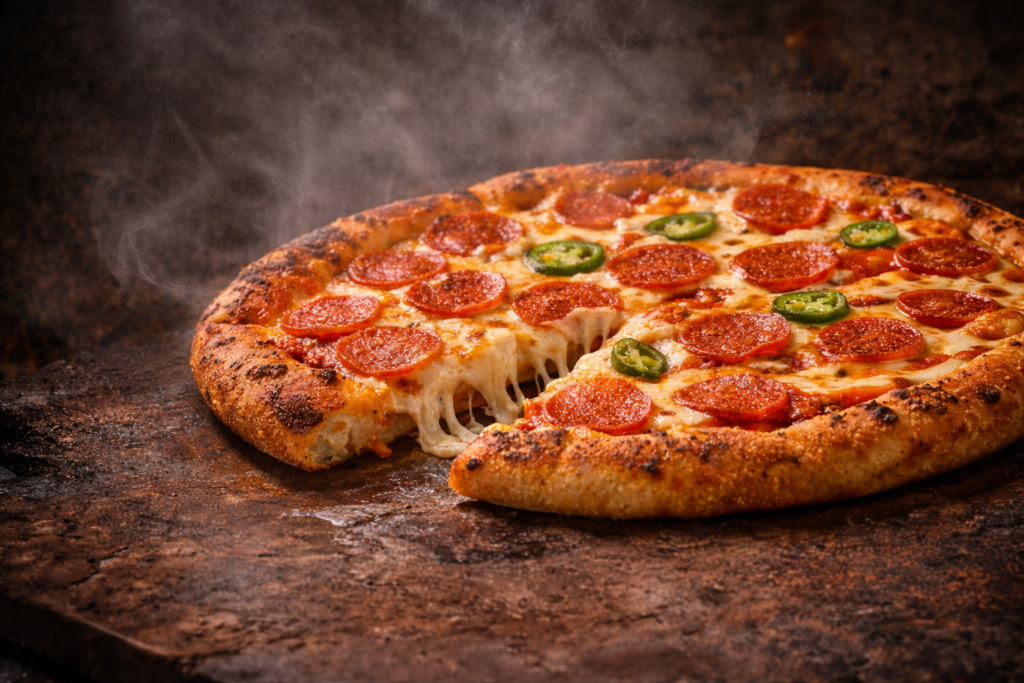 Geniet van ambachtelijke pizza’s bereid met premium ingrediënten, royale toppings en authentieke recepten — warm en vers uit onze oven, rechtstreeks bij je thuis geleverd.