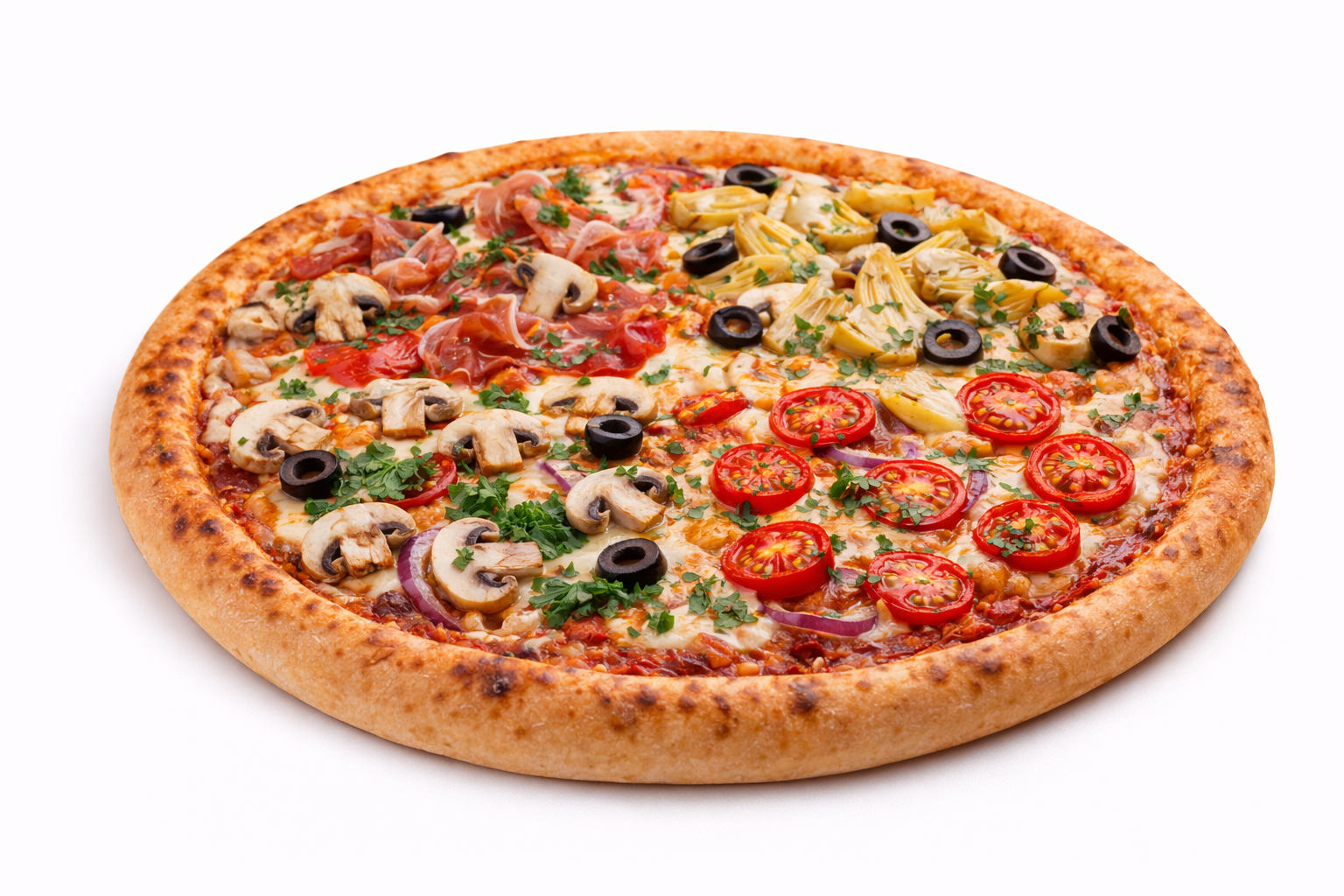 Een klassieke combinatie met salami, ham, champignons en paprika.
