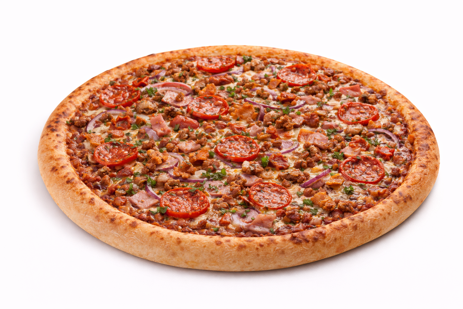 Rijkelijk belegd met dubbele pepperoni en gesmolten mozzarella.